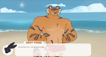 Beach Tiger is a queer furry slice-of-life romantic visual novel.